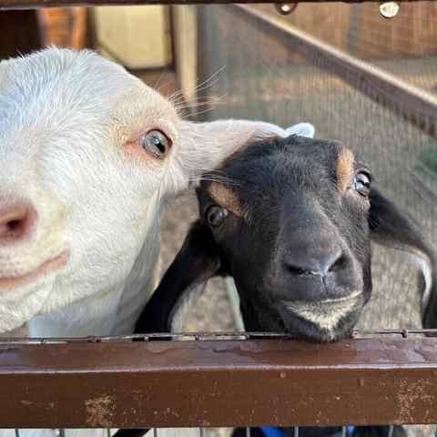 Также на территории усадьбы живут два козлёнка. Козлята очень дружелюбные и активные. Ни одного нашего гостя не оставили без своего внимания.